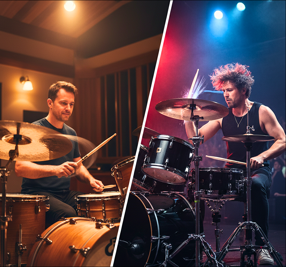 Pour le rock et le metal, les baguettes 5A anti-vibration (diamètre 1,42 cm) offrent la puissance nécessaire tout en protégeant les poignets lors des frappes intensives. Leur construction permet de maintenir l’énergie du jeu sans compromettre le confort, même pendant des concerts de plusieurs heures.