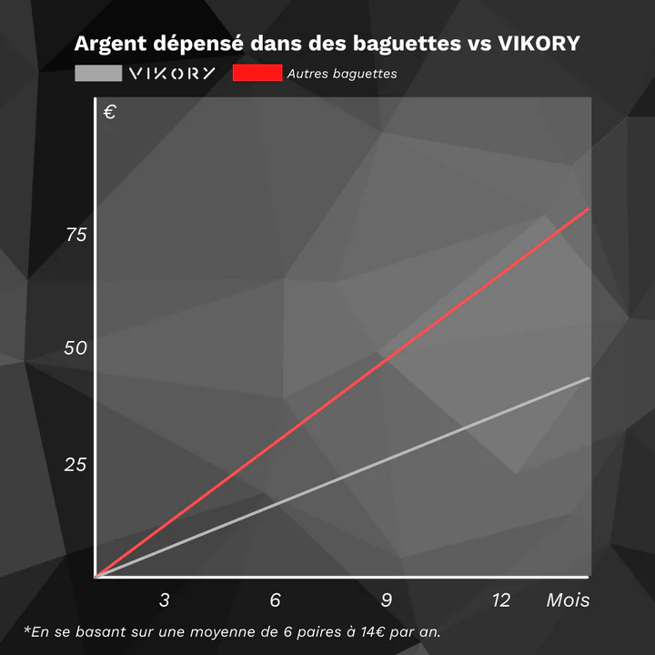 En d’autres termes, les baguettes Vikory encaissent les coups sans se fissurer autant que vos baguettes classiques.